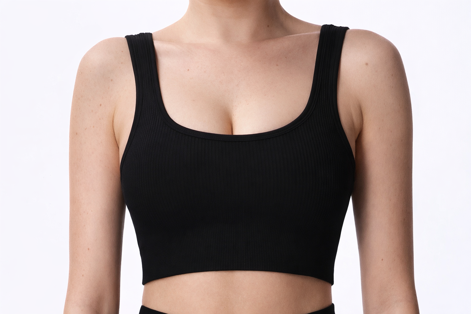- Seamless ribbed scoop neck sports bra